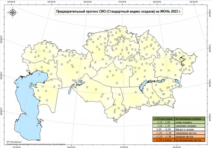 Согласно предварительному прогнозу, в июне на большей территории Казахстана условия увлажнения ожидаются преимущественно около нормы.