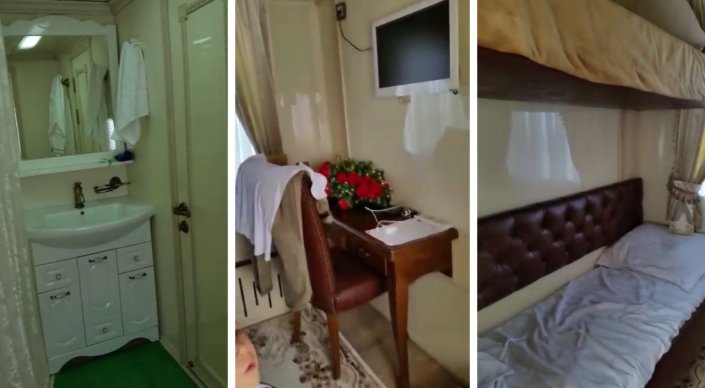 По его словам, всего в вагоне семь посадочных мест. Также Ботабеков рассказал, что вагон сдается в аренду в районе 100-130 тысяч тенге за 1000 километров для поездки в любом направлении. В нем имеется кинотеатр, душевая, свой проводник и официант. Часто вагон берут семьи для поездок на Алаколь или на EXPO в Астану. Его также называют "гостиницей на колесах".