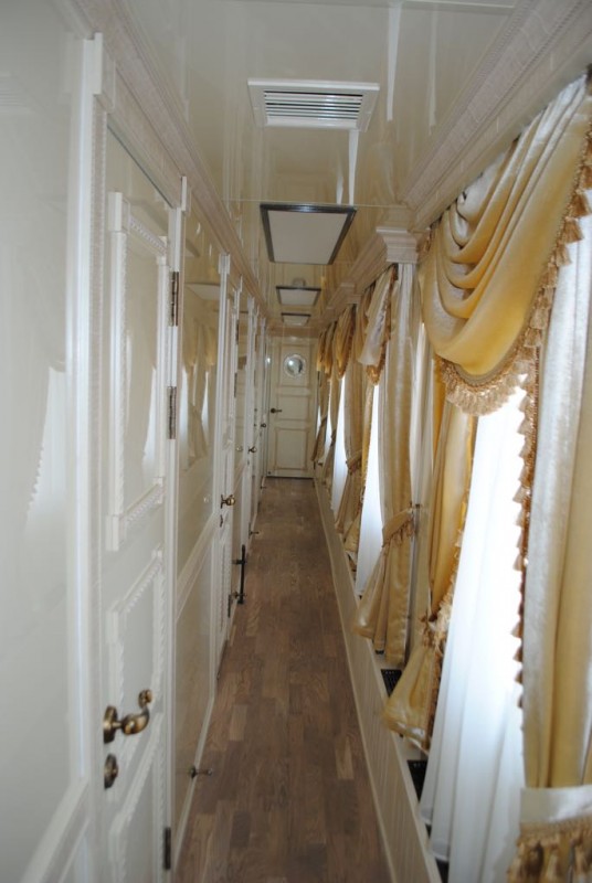 "Наша компания выкупила вагон семь лет назад и сделала модернизацию. Расположение комнат, душевых, кухни оставили прежним. Просто привели в порядок, потому что металл с годами портится, перегородки со временем тоже приходят в негодность. Мы решили сделать интерьер в более светлых тонах, потому что сам руководитель Казахской ССР был светлым человеком. Оставили некоторые элементы - телефон для связи с Москвой. Остался дух Динмухамеда Ахмедовича Кунаева. Теперь вагон можно еще 10 лет эксплуатировать", - поделился руководитель компании.