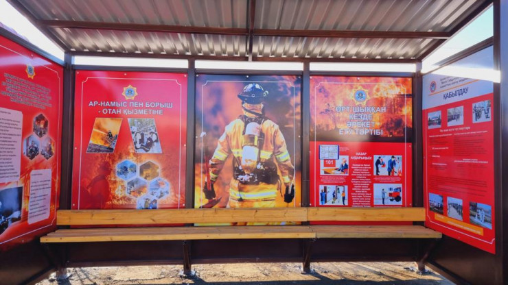 Также на остановке размещена наглядная информация о том, как можно освоить профессии спасателей и пожарных. Есть подробная инструкция по поступлению в Академию гражданской защиты имени М. Габдуллина – единственный вуз в Казахстане, где готовят квалифицированных офицеров с высшим образованием.
