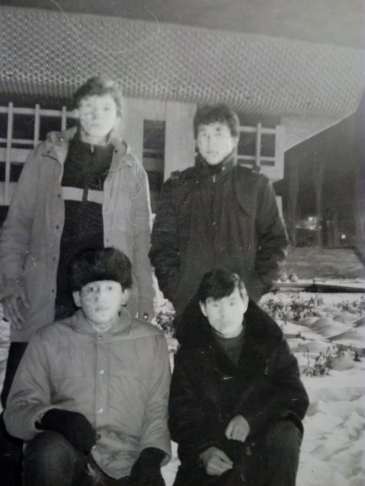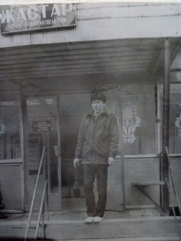 Ақмадияр Байтөреев "Жастар" жатақханасының алдында