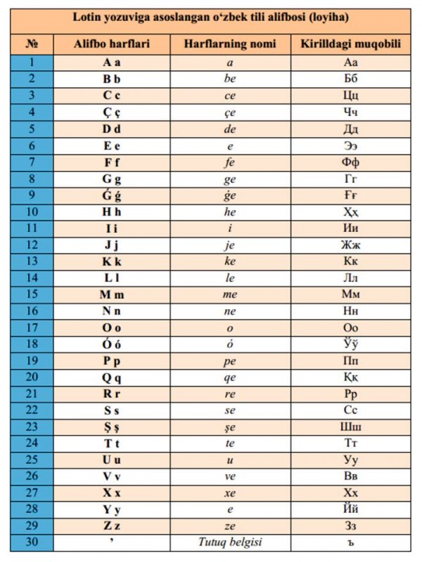 Айта кетейік, таяуда Өзбекстанда латыннегізді жаңа өзбек әліпбиі таныстырылған еді. Әліпбиді дайындауға жауапты комиссияның мүшесі Саодат Мухамедова жаңа әліпбиге көшудің себебі деп ескі әліпбидің уақыт өте келе жаңа технология заманында көшке ілесе алмайтынын атап өткен. Алайда, бұл тек жоба ретінде ұсынылып отырған нұсқа.