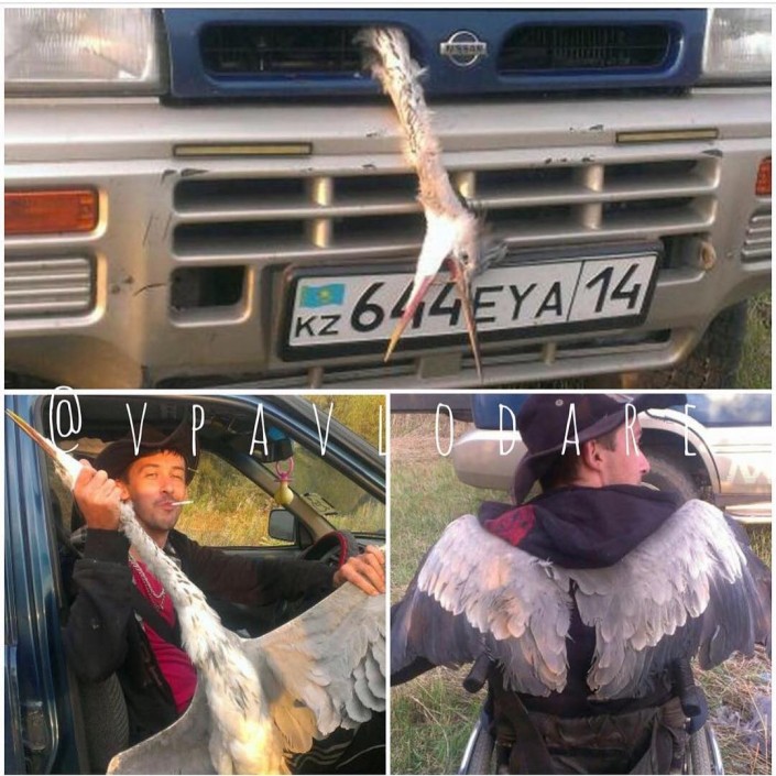 Больше всего пользователей соцсетей возмутил фотокадр, на котором голова мертвой птицы привязана к капоту иномарки. В госучреждении по охране лесов и животного мира Павлодарской области действия мужчины назвали жестокими и пообещали найти мучителя птицы.