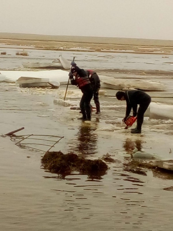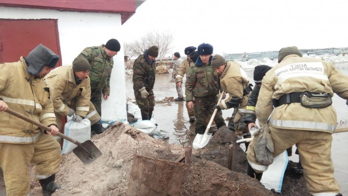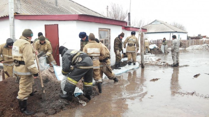 Силами и средствами подразделений ДЧС области и местных исполнительных органов проводятся работы по откачке воды из дворов и по укреплению вала вдоль реки Кызылкой путем укладки около 1500 штук мешкотары, протяженностью около 600 метров высотой 40 сантиметров, выполняется вручную дробление льда.