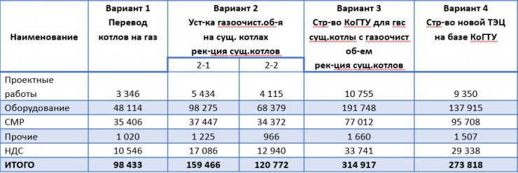 Установка газоочистительного оборудования на существующих котлах и реконструкция котлов будут стоить 159,466 миллиарда тенге и 120,772 миллиарда тенге соответственно. Эти решения наименее всего повлияют на тарифы.