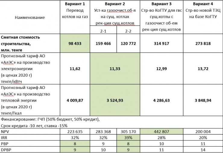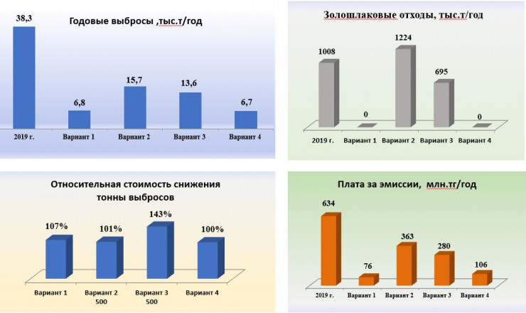 "Минимальные годовые выбросы будут достигнуты при реализации вариантов 1 и 4 - 6,7 тысячи тонн в год. Минимальная стоимость снижения тонны выбросов достигается в вариантах 1, 2 и 4", - обращают внимание в АО "КазНИПИЭнергопром".