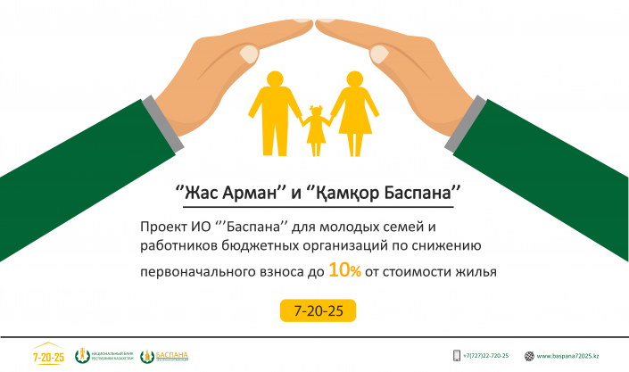 Однако в целях снижения финансовой нагрузки на молодые семьи и работников бюджетной сферы разработаны продукты "Жас арман" и "Қамқор баспана". В категорию "молодые семьи" входят люди в возрасте до 35 лет включительно. Им первоначальный взнос снижен до 10 процентов. Списки участников формируют акиматы согласно установленным правилам.