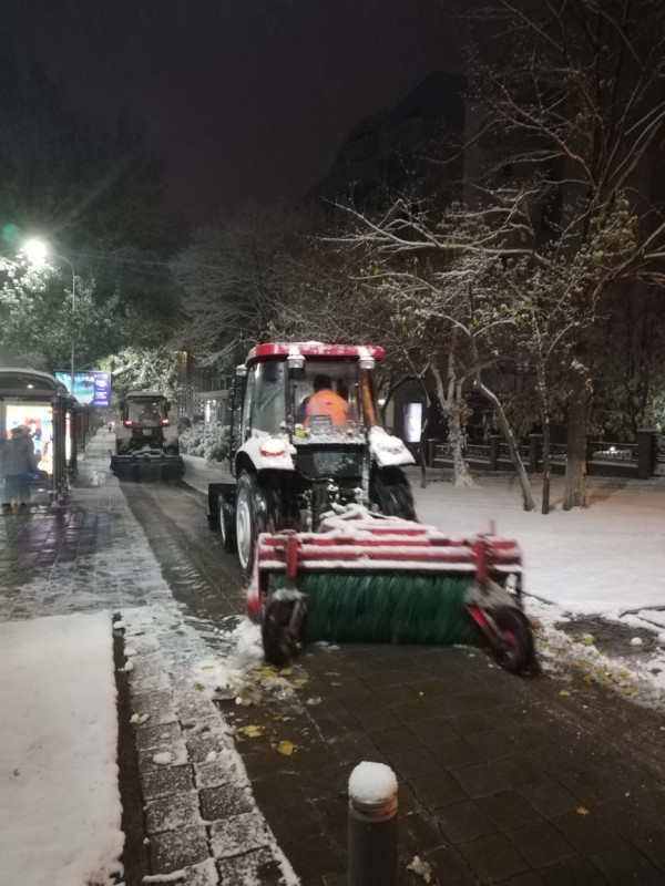 С утра 7 ноября на дороги Алматы в связи с первым снегом выведено 498 единиц техники, в том числе 174 пескоразбрасывателя и 1688 дорожных рабочих.