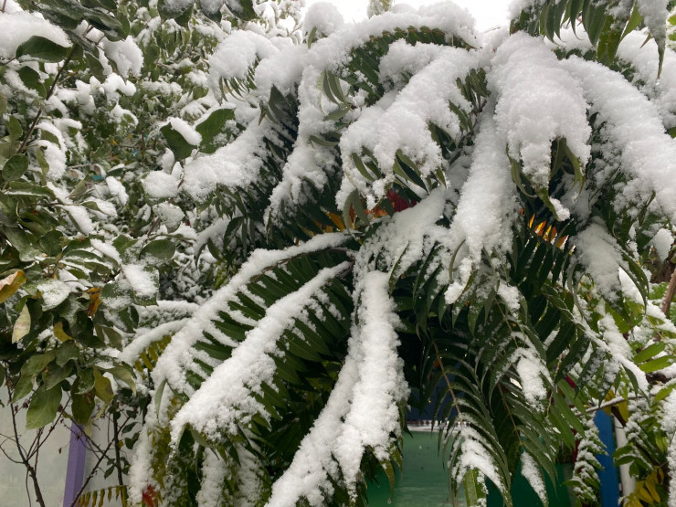 6 октября в Алматы выпал первый снег. Жители города делятся в социальных сетях фотографиями необычной картины - почти еще зеленого города, припорошенного снегом, передает корреспондент Tengrinews.kz.