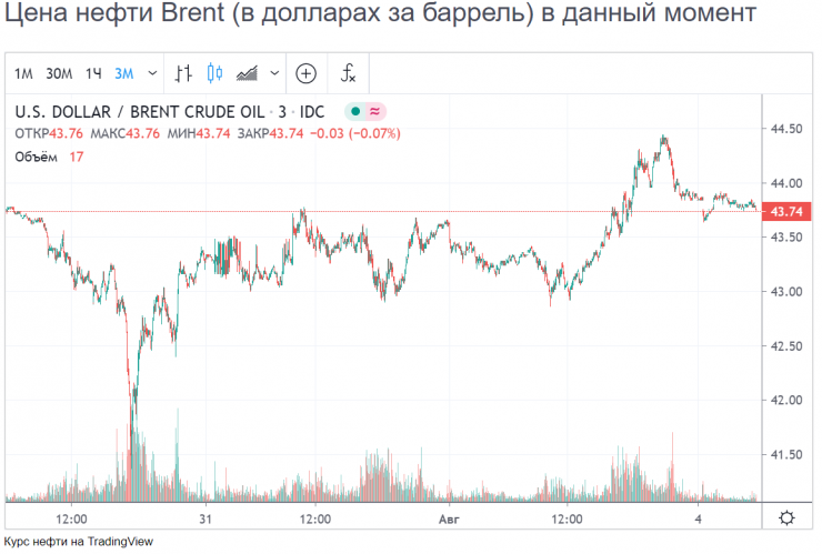 Сейчас нефть продолжает укрепляться. Несмотря на полудолларовое суточное снижение, цена на нефть марки Brent к этому моменту составляет 43,74 доллара за баррель.