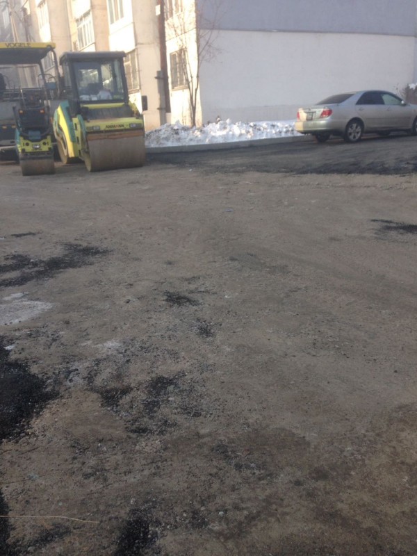 Ранее жители микрорайона "Карасу" сняли на видео укладку асфальта во дворе многоквартирного дома после снегопада. Как сообщила жительница одного из дворов, несмотря на холод, работы по реставрации дворовой территории шли полным ходом.