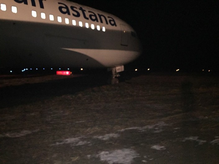 Появились фото съехавшего со взлетно-посадочной полосы самолета в Алматы Фото Денис Кривошеев.