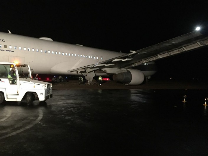 Появились фото съехавшего со взлетно-посадочной полосы самолета в аэропорту Алматы, передает Tengrinews.kz.