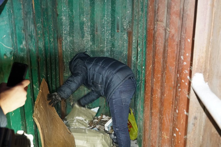 Во дворе пункта приема полицейские обнаружили загадочную деревянную будку, которая была заперта на замок. После просьбы сотрудников работник пункта достал ключи.