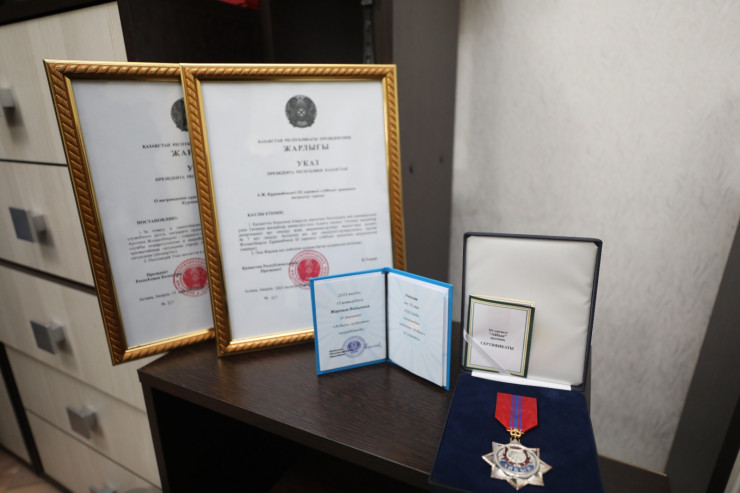 Первый вице-министр по ЧС Ибрагим Кульшимбаев 20 мая посетил семью алматинского пожарного, чтобы вручить орден. Его приняла мать спасателя Бахыткуль Курманбекова.