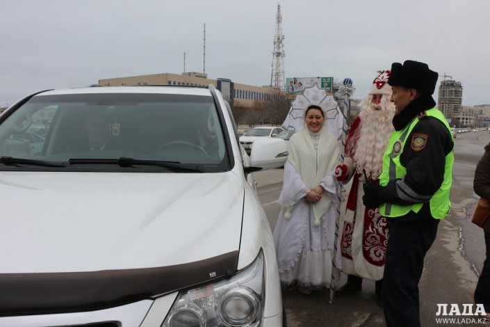 Полицейские Актау вместо протоколов о нарушении выдали водителям подарки, сообщает Lada.kz.