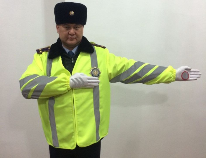 "Светоотражающие жилеты с рукавами и без рукавов входят в состав форменного обмундирования сотрудников дорожно-патрульной полиции (ДПП). При этом после отмены используемых жезлов подразделениям ДПП было рекомендовано при регулировании движения в темное время суток использовать светоотражающие жилеты с рукавами. Также сообщаю, отдельными территориальными подразделениями ДПП используются белые перчатки со светоотражающими элементами, что не запрещено ведомственными нормативными правовыми актами. Это не отдельно. Это у нас было", - сообщил Садубаев.