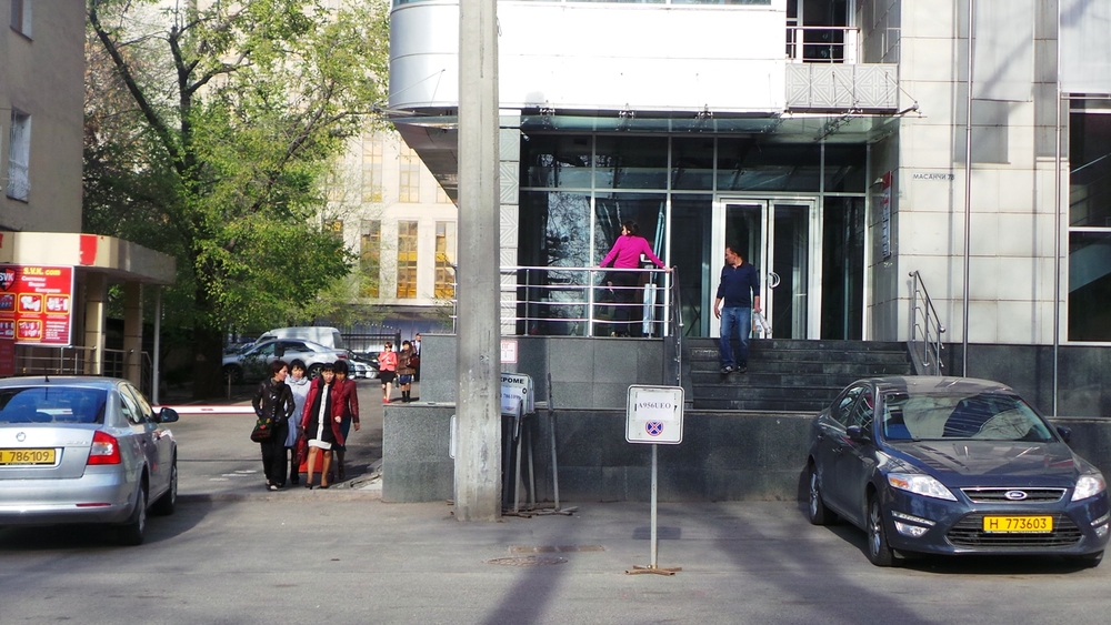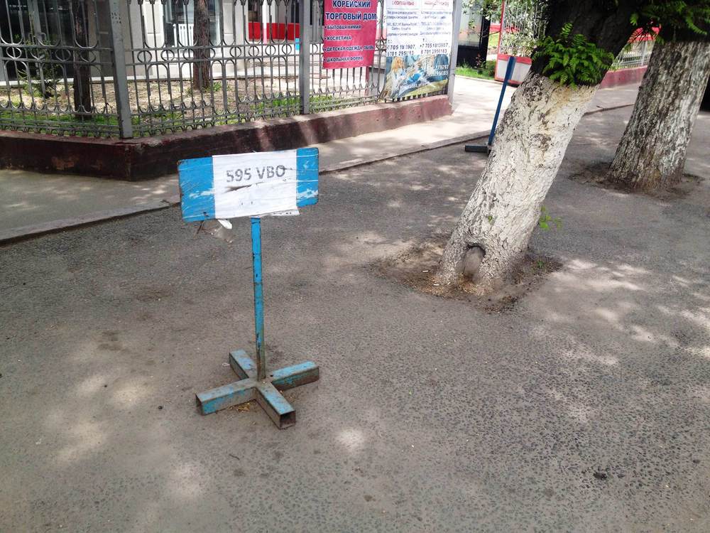 Полицию Алматы просят разобраться с "самозахватчиками парковок" Знаки торгового центра и российского банка. ©Яков Федоров