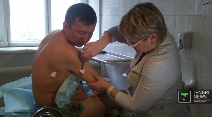 Полковника осматривает врач. Фото © Тengrinews.kz