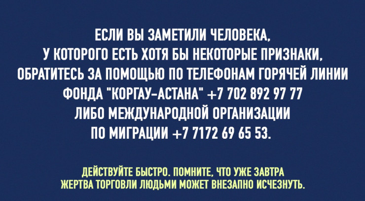 "Мигранты, которые едут на работу, просто граждане, уезжающие за рубеж, - никто никогда не предполагает, что он может попасть в рабство. Был случай, когда у мужчины в Карагандинской области сломалась машина, он ее оставил и пошел дальше. На него напали и отвезли на ферму, заставили работать. Когда ему удалось сбежать, он обратился в полицию, и фермер заплатил компенсацию", - рассказала руководитель фонда "Коргау".