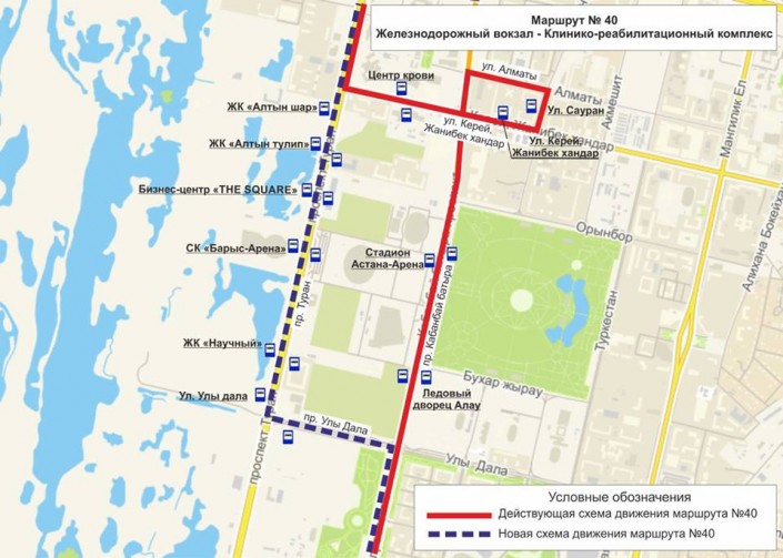 "Уважаемые жители и гости столицы! По многочисленным просьбам пассажиров в целях транспортного обслуживания ледового дворца "Барыс-Арена", а также новых объектов по проспекту Туран с 10 октября 2018 года изменяется схема движения маршрута № 40", - сообщили в пресс-службе.