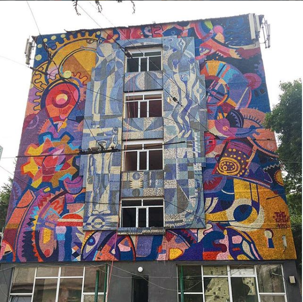 Стрит-арт-художники из объединения Tigrohaud crew украсили одну из стен в Алматы портретом Динмухамеда Кунаева, передает корреспондент Tengrinews.kz.