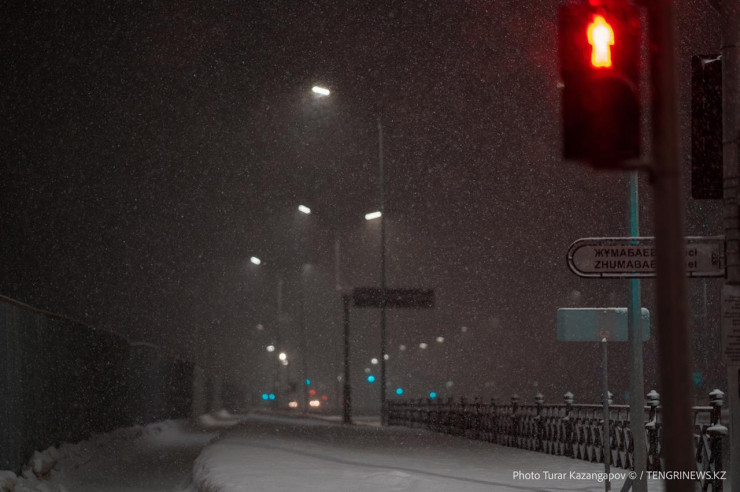 В столице Казахстана ночью выпал снег.