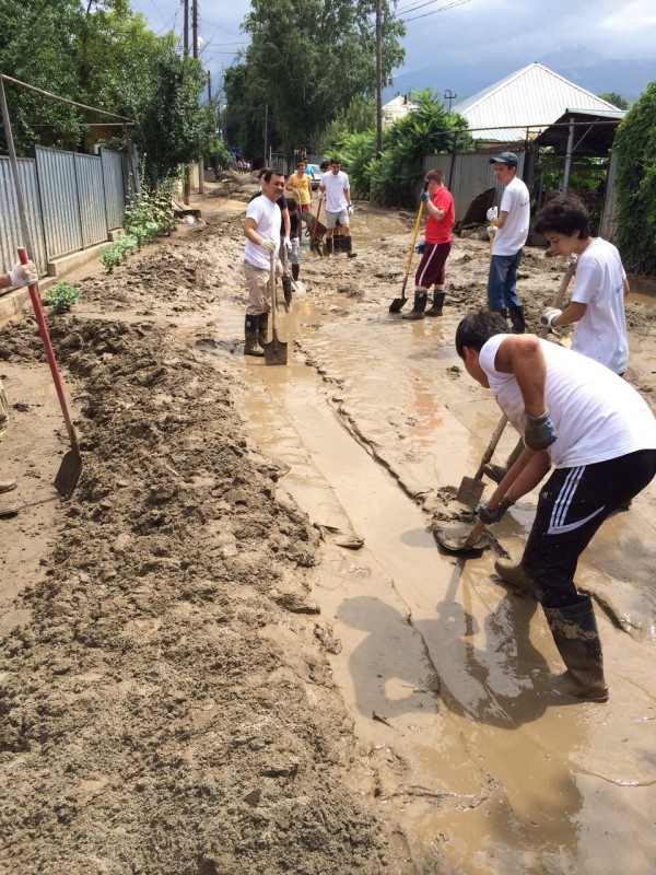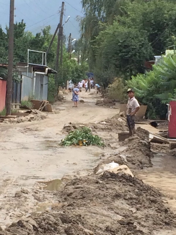 Он поясняет, что люди вычищают улицу и дворы самостоятельно, своими силами, не дождавшись спецтехники. "У меня весь двор, газон полностью в глине. Сейчас уже проще. Люди всем миром помогают, работают. Но улица до сих пор не очищена. В сапогах пройти невозможно, люди ходят босиком, потому что бесполезно обуваться. За эти дни из акимата вчера вечером пришли - переписывали, у кого что пострадало. Такое ощущение, что для проформы. Но ни техники, ни представителей акимата не было. (...) Никто из жителей на работу не может выехать, всем миром пытаются что-то почистить. Но в первую очередь люди чистят свои дворы, а выносить весь хлам, мусор, глину куда? Только на проезжую часть. Сейчас по проезжей части здесь редкая машина проедет", - объясняет Владимир Чен.