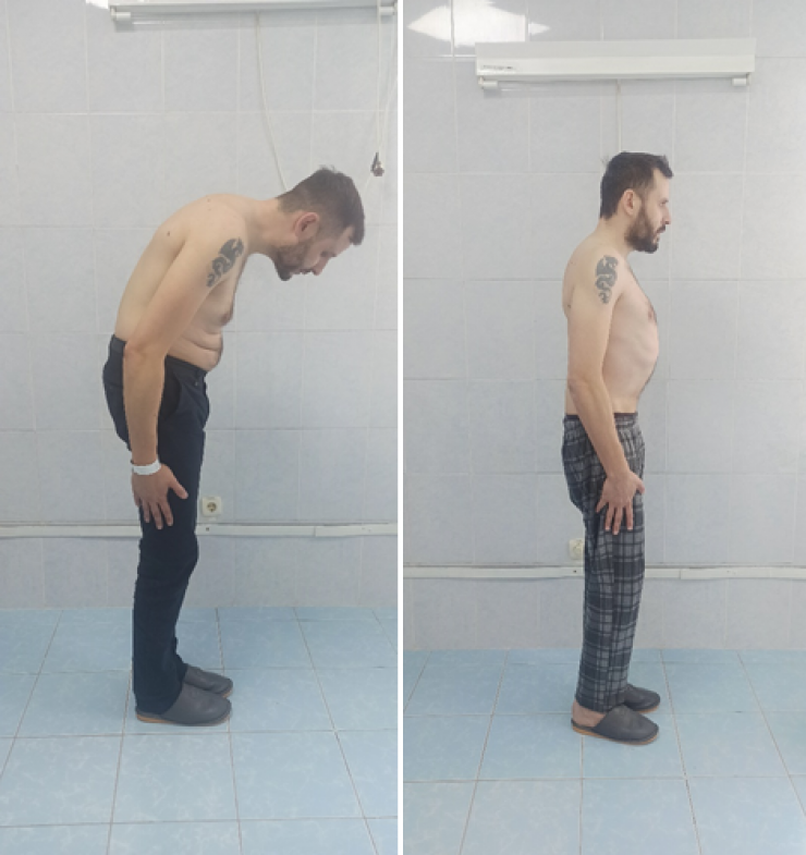 Владимир из Экибастуза в течение долгих лет страдал от болезни, которую врачи обозначают как "позу просящего". Это анкилозирующий спондилоартрит, он вызывает у человека патологический наклон, при котором он не может даже поднять голову, чтобы посмотреть вперед.
