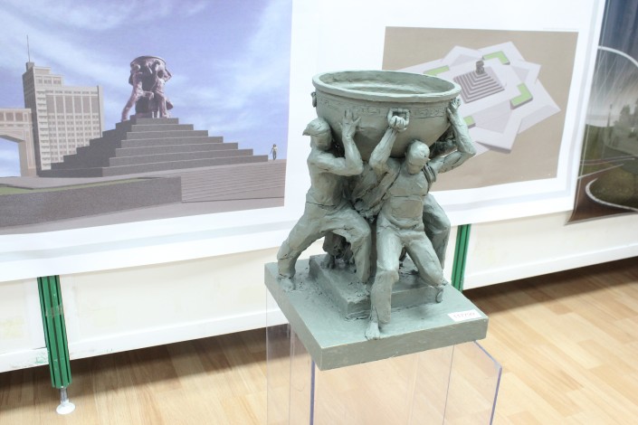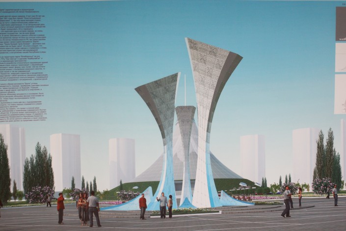 В НИПИ "Астанагенплан" выставлены все работы участников конкурса. Для объективного решения судей авторство работ не раскрывается, каждой конкурсной работе присвоен индивидуальный номер. Мы выбрали лишь малую часть работ, чтобы у читателя могло сложиться примерное впечатление о возможном новом монументе.