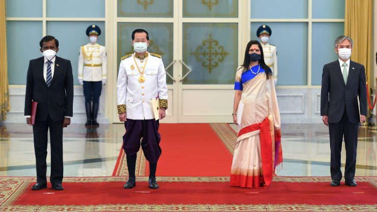 Верительные грамоты вручили посол Японии Джун Ямада, посол Индии Шубдаршини Трипати, а также послы по совместительству - посол Камбоджи Ким Хенг Миэ и посол Шри-Ланки Мигахаланде Дураге Ламаванса.