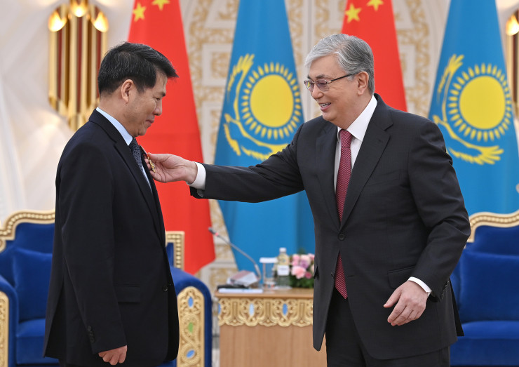 В завершение встречи Глава государства наградил Ли Хуэя орденом "Достык" II степени за вклад в укрепление взаимовыгодного казахско-китайского сотрудничества, а также в ознаменование 30-летней годовщины установления дипломатических отношений между Казахстаном и Китаем.