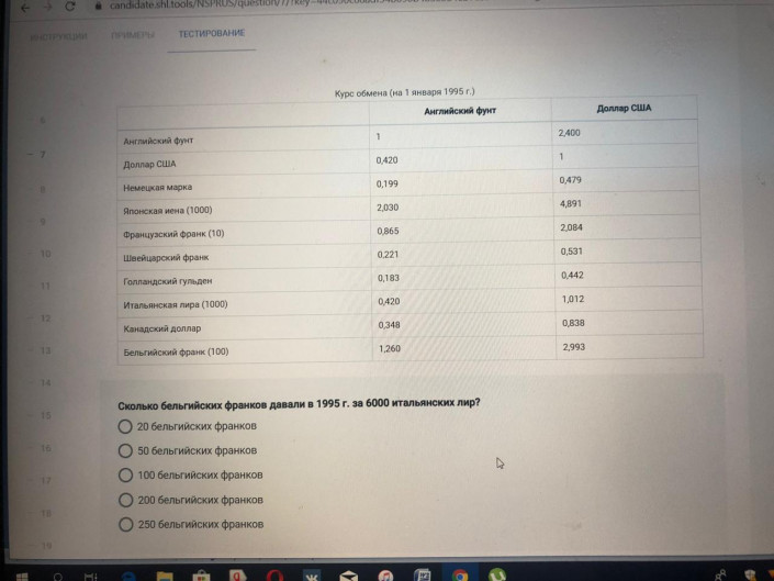 В одном из заданий необходимо было выяснить, сколько бельгийских франков давали в 1995 году за 6 тысяч итальянских лир.