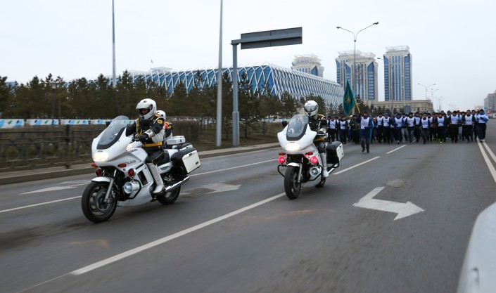 Старт массовому забегу был дан у монумента "Қазак Елі" ранним утром. Сотрудники полиции всех подразделений ДВД и ветераны органов внутренних дел во главе с начальником ДВД генерал-майором полиции Амантаем Аубакировым пробежали по маршруту, рассчитанному на 2 400 метров.
