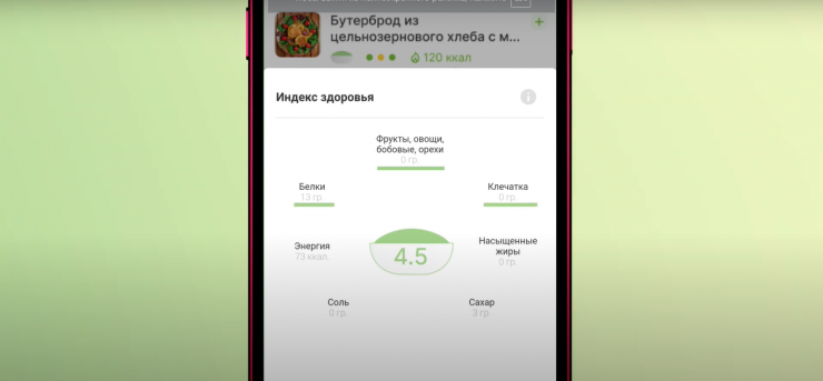 Все показатели по употребленным пользователем блюдам и продуктам формируются в индекс здоровья, который по пятибалльной шкале показывает, насколько полезным или вредным было ваше питание в ходе одного употребления пищи, в течение дня или недели.