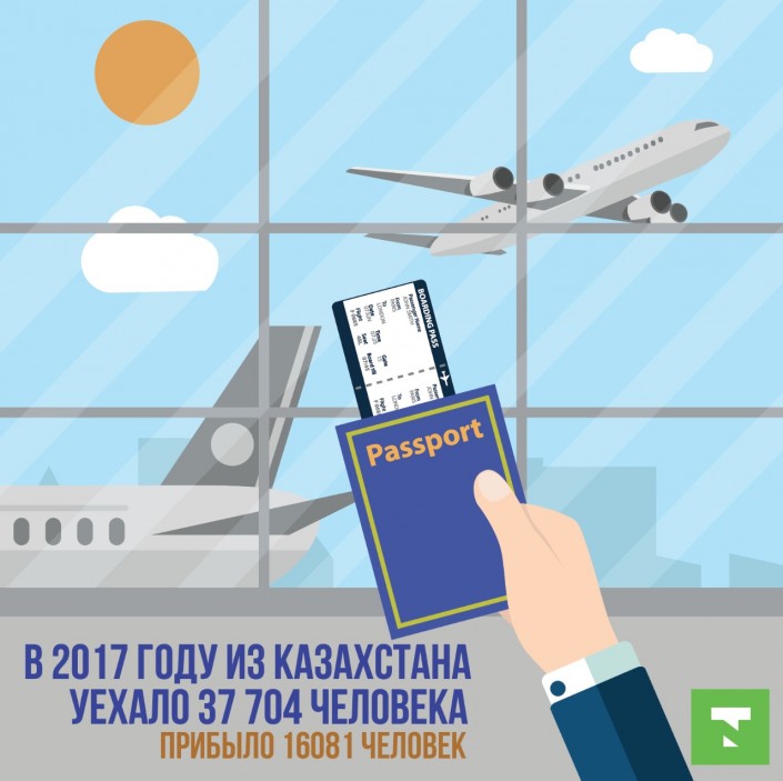 Ранее сообщалось, что в 2017 году из Казахстана выбыло 37 704 человека, при этом 35 680 человек из них - граждане РК. Из общего количества выбывших уехало в Россию 87 процентов, или 32 875 человек. Также люди уезжали в Германию - 2 960 человек, Беларусь - 288 человек, США - 284 человека и Израиль - 127 человек.