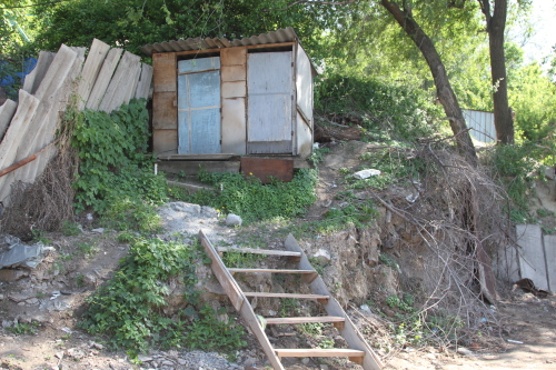 Подъем к уличному туалету очень аккуратный - предусмотрены ступеньки.