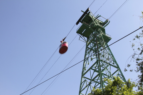 Одной из особенностей улицы Коккинаки является вид на канатную дорогу, по которой ездят вагоны.