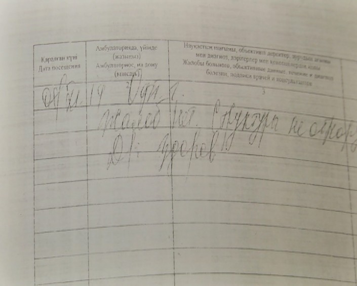 "В поселке Актау всегда была проблема с медицинскими кадрами. Те врачи, которые на тот момент работали, сейчас не работают. Кого-то уже вообще нет в живых, кто-то уехал, поэтому состав врачей поменялся. Медицинская карта находится в суде. Когда мы ее получим, проведем служебное расследование. Говорить, не имея документов и не проведя анализа, я не могу. Пациент мог обращаться, почему бы нет... Ну если есть записи", - говорит Ескалиева.