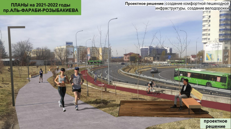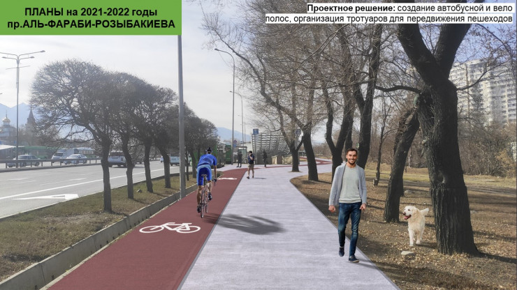 По самому проспекту Аль-Фараби от ВОАД до парка Первого Президента построят тротуары, велодорожки и автобусную полосу. Акимат планирует обновить также и весь путь до аэропорта. Подробнее читайте здесь.