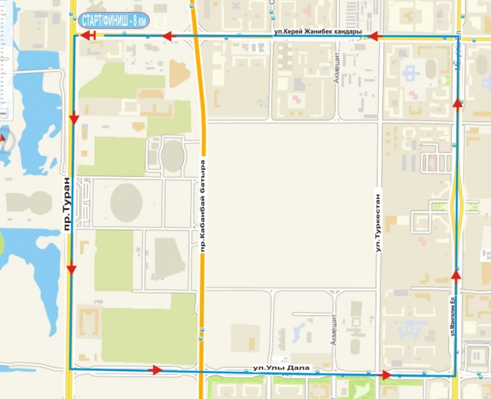 Движение будет ограничено по проспекту Туран от улицы Керей, Жанибек хандары до улицы Улы Дала, по улице Улы Дала от проспекта Туран до улицы Мангилик Ел, по улице Мангилик Ел от улицы Улы Дала до улицы Керей, Жанибек хандары и по улице Керей, Жанибек хандары от улицы Мангилик Ел до проспекта Туран.