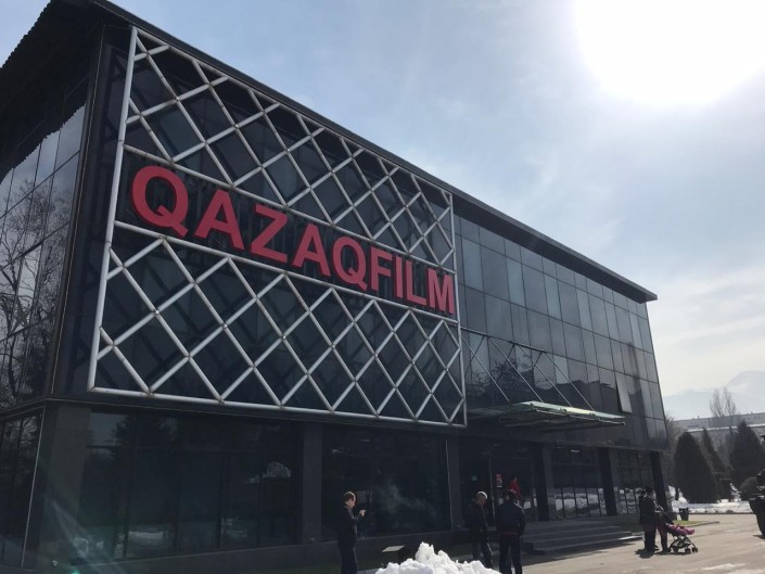 Киностудия "Казахфильм" имени Шакена Айманова. Вывеска на латинице появилась здесь в феврале 2019 года. Как сообщили в пресс-службе организации, это было сделано по поручению руководства. В киностудии отметили важность перехода казахского алфавита на латинскую графику.
