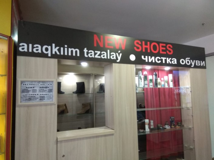 Aıaqkıim tazalaý - бутик, в котором оказывают услуги по чистке обуви. Он расположен на цокольном этаже в торговом центре "Спутник" в Алматы.