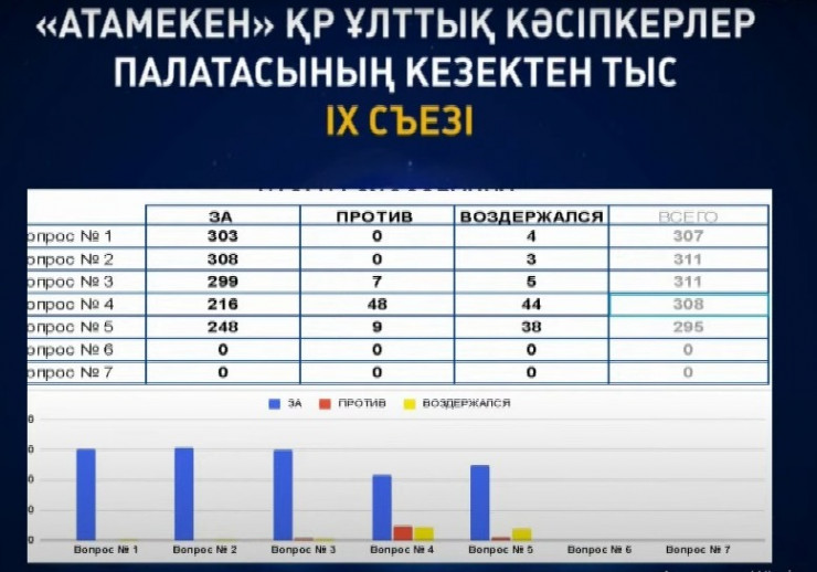 Общим голосованием членов палаты Баталов был избран председателем президиума НПП "Атамекен". За его кандидатуру проголосовали 248 человек.