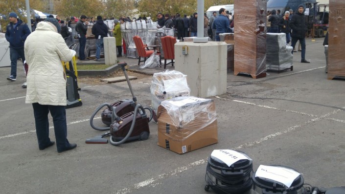 "В прошлом году мы мебель тут брали, комоды, спальный гарнитур. Это же все из Америки. Дешевле гораздо и качество добротное. Но сейчас, видимо, мы не зайдем, столько народу пришло", - призналась жительница Астаны по имени Мария.