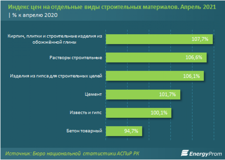 "Глава Министерства индустрии и инфраструктурного развития Бейбут Атамкулов при подведении итогов четырех месяцев текущего года на заседании правительства отметил рост производства строительных материалов на 26,5 процента. Драйвером роста выступило производство теплоизоляционных материалов (годовой рост - в 2,5 раза), кирпичей (в 2,9 раза), портландцемента (плюс 17,6 процента), гипса (плюс 21,8 процента) и строительных растворов (плюс 22,2 процента).
