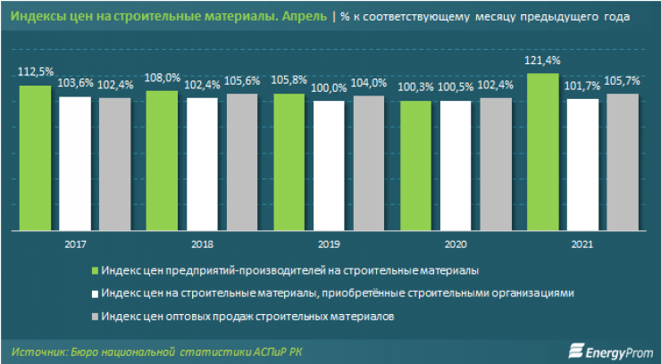 Аналитики подсчитали, что цены предприятий-производителей на строительные материалы по итогам апреля показали годовой рост на 21,4 процента. Годом ранее прирост был лишь на 0,3 процента.