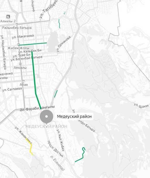 В Медеуском районе отказались от ремонта на двух улицах: Турксибской от улицы Оспанова до дома № 52 и Олимпийской от улицы Олимпийской до Тышканбаева. Дороги в микрорайон Горный гигант все еще перекрыты.
