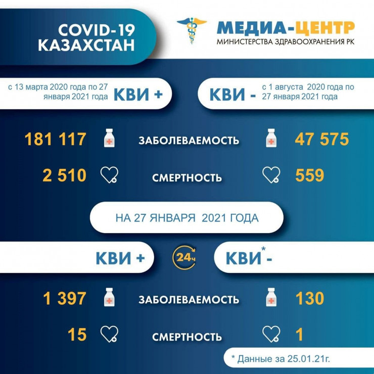 Резко возросло число больных коронавирусной пневмонией казахстанцев: за сутки выявили 130 новых случаев болезни. А накануне, 26 января, сообщалось лишь о восьми заболевших пневмонией, передает Tengrinews.kz со ссылкой на Минздрав.