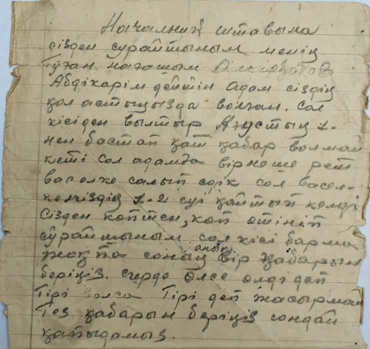 По ее словам, Абдыкарим очень часто отправлял весточки с фронта. Одно из писем было написано 26 сентября 1944 года.